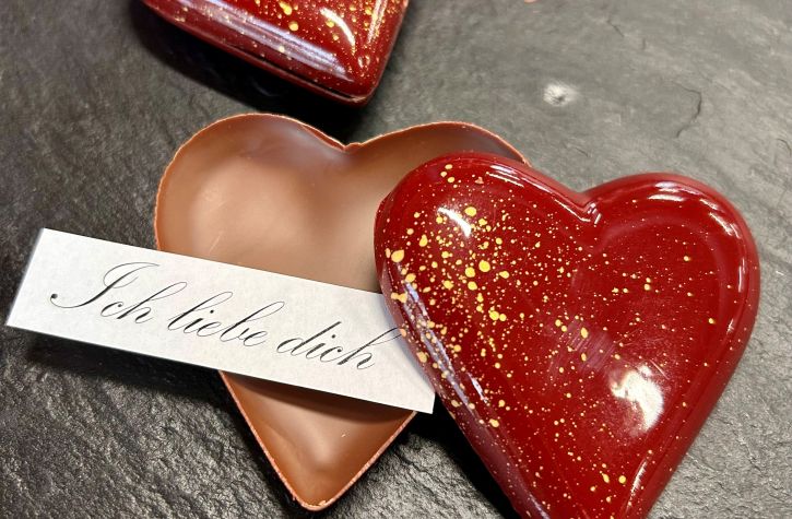 Liebe geht durch den Magen – und durch die richtigen Worte. Zum Valentinstag können Sie Ihre persönliche Nachricht in einem zartschmelzenden Schokoherz verschenken. Ein süsser Genussmoment, der von Herzen kommt und lange in Erinnerung bleibt.